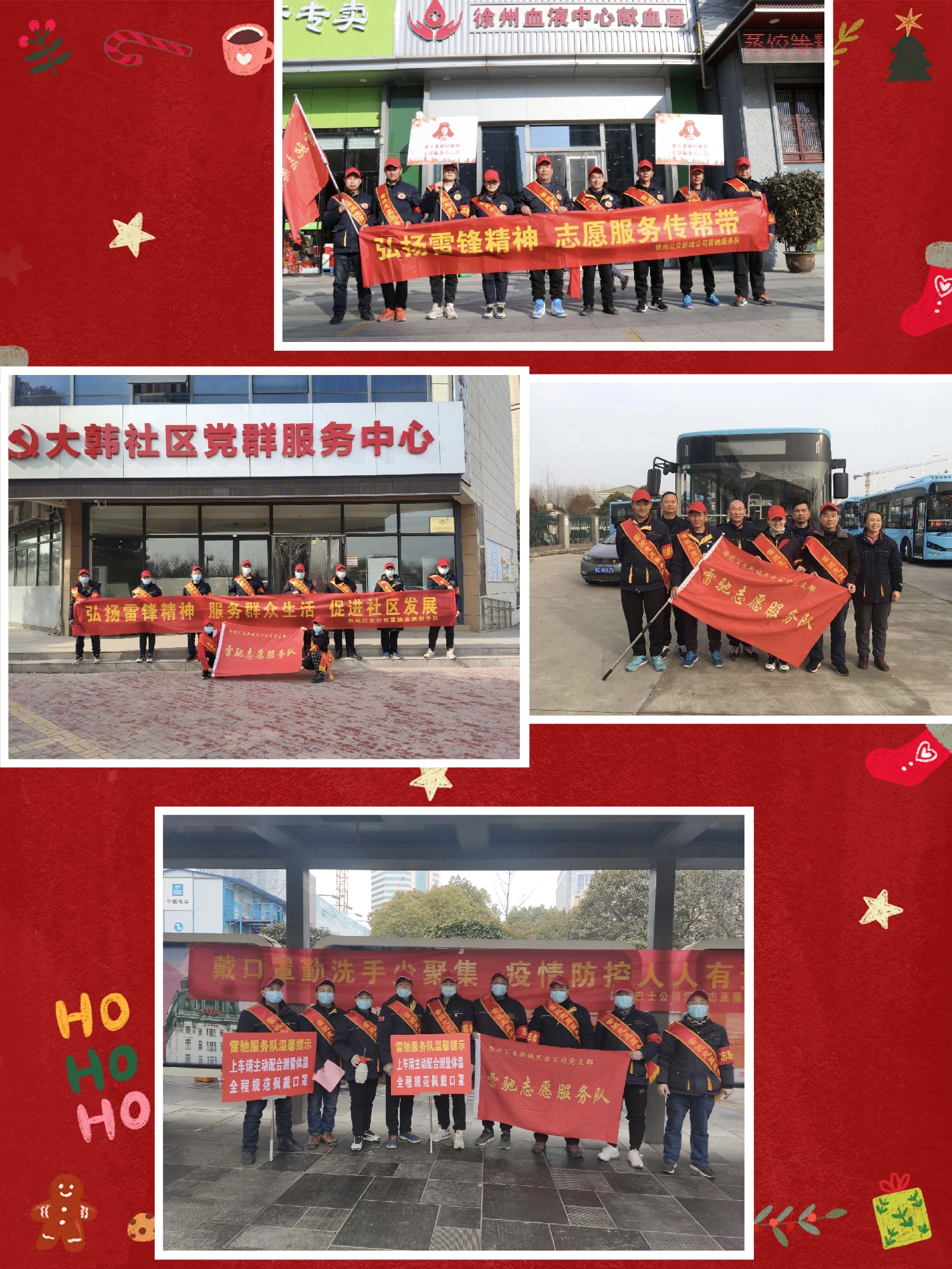在這一年中,雷馳平安志愿服務隊秉承“弘揚雷鋒精神,秉持志愿服務,傳承紅色文化”的精神,開展了形式多樣的志愿服務:農(nóng)歷年春節(jié)前走進社區(qū)寫春聯(lián)送溫暖;新冠病毒反復重卷而來,隊員們多次組織活動宣傳疫情注意事項,在不到一個月的時間內(nèi),三次協(xié)助社區(qū)和學校開展核酸采樣活動;賈汪馬莊村志愿服務;雷鋒日走進獻血屋愛心獻血;炎炎夏日服務中高考學子;打掃車場衛(wèi)生;到市區(qū)大站站臺服務乘客;節(jié)日去大龍湖保護環(huán)境服務游客;在徐州馬拉松比賽現(xiàn)場,為來徐的全國運動員提供友情服務;快遞站幫扶快遞小哥;河南汛情之后迅速組織隊員,進行防洪避災知識宣傳;值五一勞動節(jié)帶著孩子們一起為環(huán)衛(wèi)工人送溫暖;七一前夕,組織黨員和隊友走進站臺、車廂和火車站人流量大的地方,宣傳黨的歷史讓大家汲取前進的力量;在9.9公益日向社會愛心人士籌善款為公益事業(yè)添磚加瓦;接近年底組織防詐反詐宣傳,讓市民朋友們守護好自己的錢袋子等等很多活動。