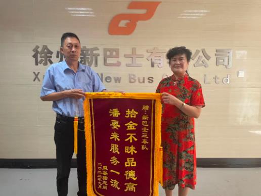 9月5日上午,市民楊女士專程來(lái)到徐州公交新巴士公司送上一面印有“拾金不昧品德高,潘要來(lái)服務(wù)一流”的錦旗,感謝徐州新巴士公司8路線駕駛員潘要來(lái)。