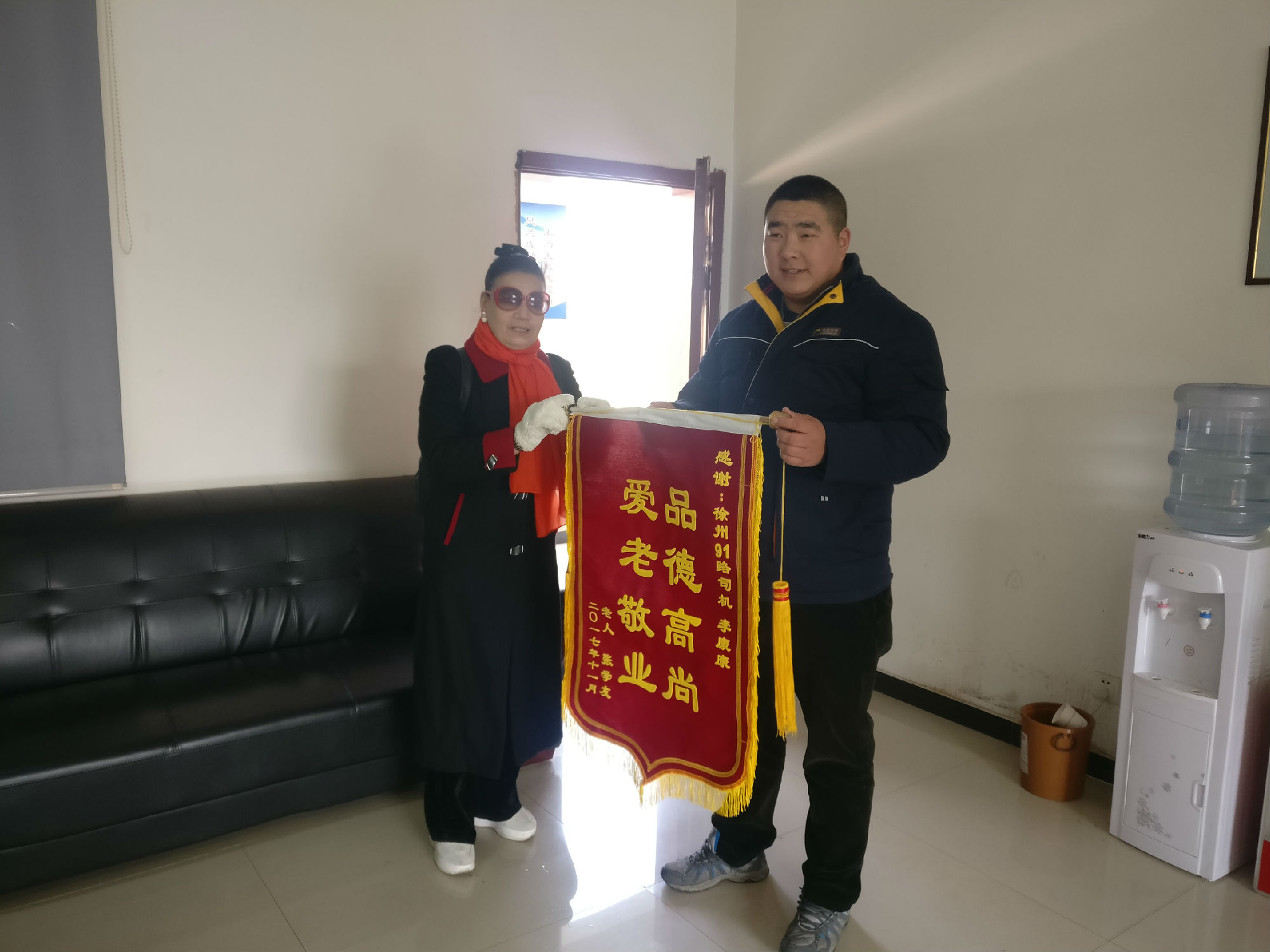 如果你是一線陽光,你是否照亮了一分黑暗。11月21日,李康康正在執(zhí)行末班車的任務(wù),夜晚比較寒冷,車上乘客也比較少。即將到達終點站時,車上僅剩一位年近70的張女士,李師傅看到她神情慌張看著窗外。經(jīng)過詢問,得知張女士剛搬到新城區(qū)住不久,迷路了。李康康考慮到張女士年齡較大,于是就把想送張女士回家的想法向線路長及公司做出了匯報。經(jīng)批準(zhǔn)后,他開車將張女士送回了家。事后,張女士為了表達謝意,為李師傅送來一面錦旗。