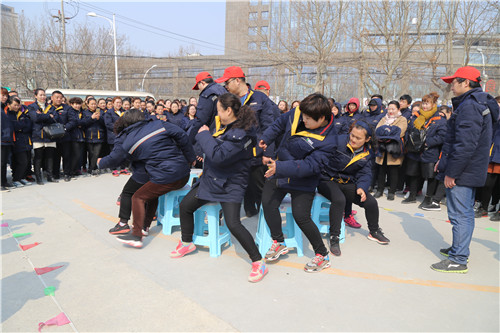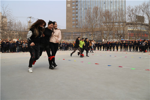 “參賽隊(duì)員各就各位!裁判員準(zhǔn)備計(jì)時(shí)!”運(yùn)動(dòng)會(huì)主持人一聲令下,首先開始比拼的項(xiàng)目是需要隊(duì)員齊心協(xié)力,發(fā)揚(yáng)合作精神的“三人四足接力賽”,三人一組紅繩綁腿齊步走,每隊(duì)12名參賽隊(duì)員,比的是速度,更是勁兒往一處使的同心合力?!凹佑停〖佑桶?!”“一二!一二!”比賽場(chǎng)上運(yùn)動(dòng)員的號(hào)子聲和場(chǎng)外女工們的加油聲、歡笑聲交織一起,此起彼伏。