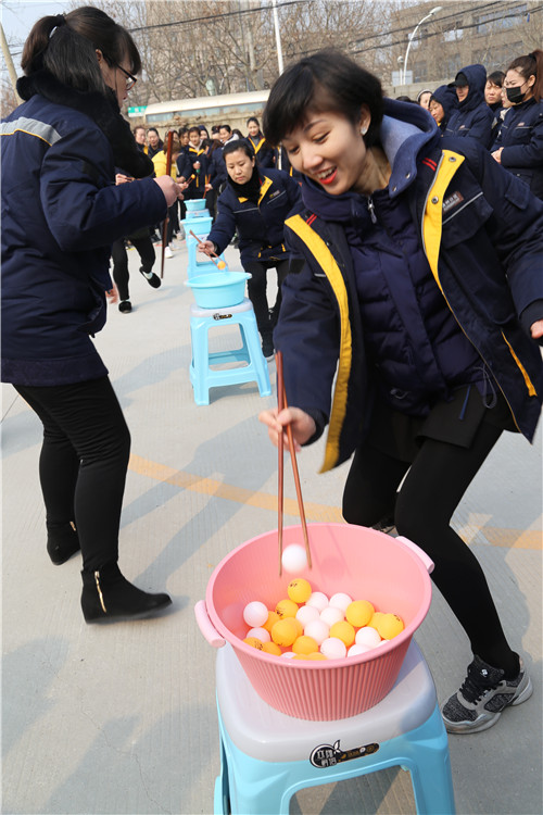 “穿針引線接力賽”和“夾乒乓球比賽”比較有意思,項(xiàng)目充分展現(xiàn)了女工們心思細(xì)膩的一面和嫻熟的家務(wù)活兒功底。手捏繡花針,穿針引線,筷子夾乒乓球,分明是練“炸丸子”嘛。參賽隊(duì)員情緒飽滿,勠力同心,密切配合,氣氛歡快熱烈而緊張,一場(chǎng)場(chǎng)精彩的比拼把運(yùn)動(dòng)會(huì)推向一個(gè)又一個(gè)高潮。尤其是最后一項(xiàng)“搶板凳比賽”,看誰反應(yīng)快,比誰會(huì)“搶”,快樂有趣,更是引來一次次加油喝彩,一波又一波歡聲笑語!