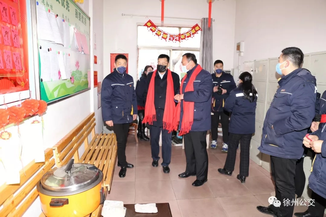 與此同時,集團總經理馮陸陸,常務副總經理蔣成彪,副總經理丁玉華等領導分別帶隊分成三組,奔赴公司各調度室、停車場、維修車間、充電站等20多個站點,看望慰問了一線員工。公司領導叮囑各級管理人員、一線員工務必佩戴口罩上崗,嚴格執(zhí)行營運車輛的“日消毒”和“每班次通風”制度,切實做好疫情防控工作。此外,各單位也積極做好后勤保障工作,為一線員工準備好春節(jié)期間的用餐。