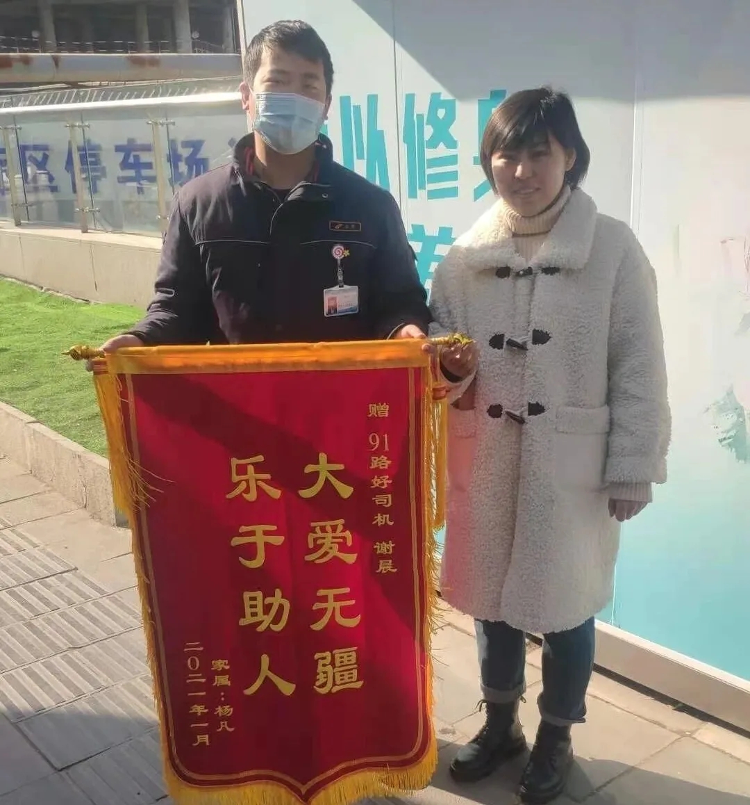 2021年1月18日上午10時(shí)左右,市民楊女士急匆匆地走向彭城路站臺(tái),她剛到站臺(tái)就握著91路車(chē)駕駛員謝晨的手不停地道謝。到底發(fā)生了什么事呢?