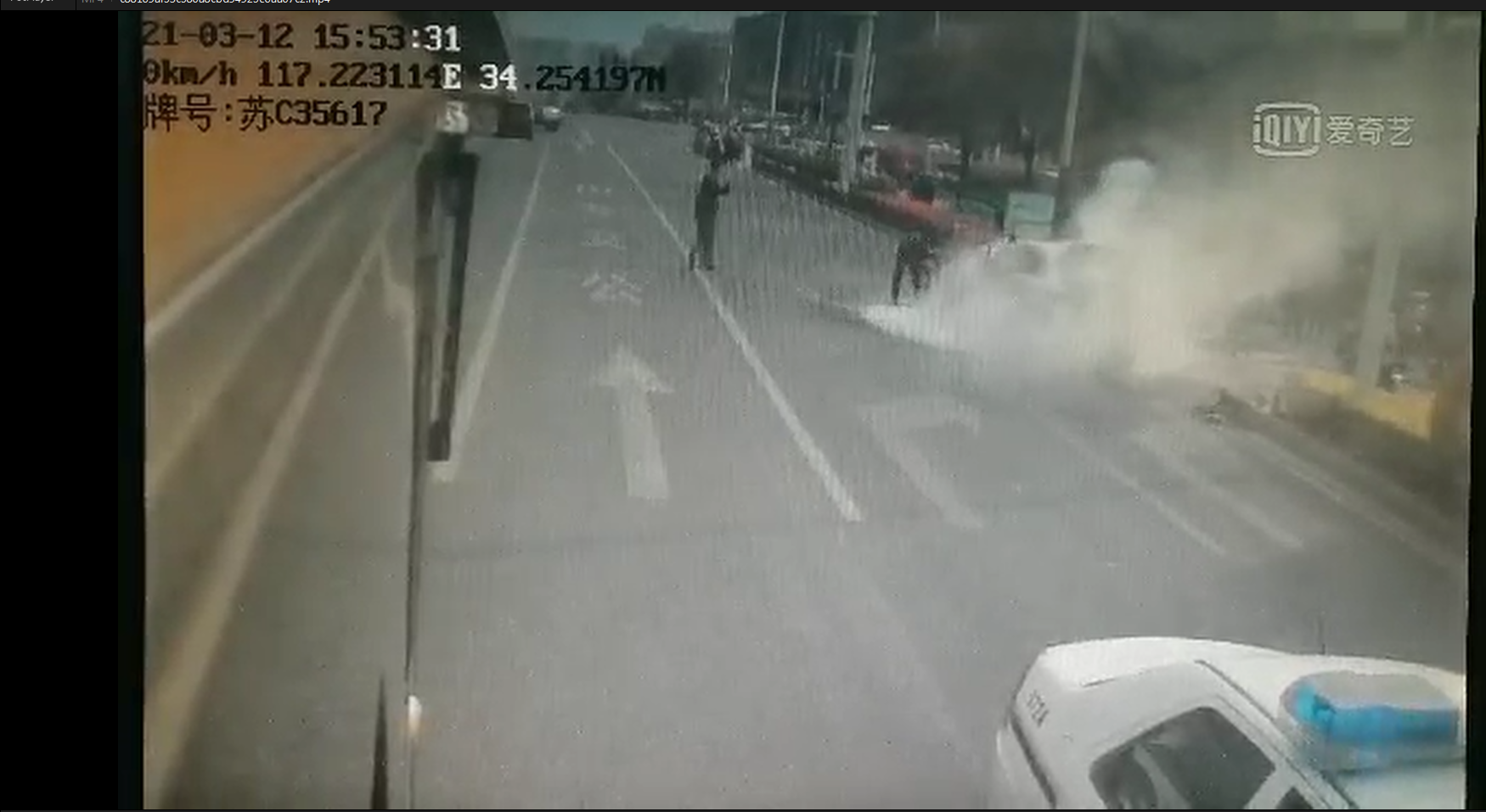 3月12日下午 ,52路駕駛員周星駕駛2180號車行駛至升輝裝飾城附近時,發(fā)現(xiàn)前方一輛私家車著火,滾滾濃煙不斷冒出,情況十分危急。
