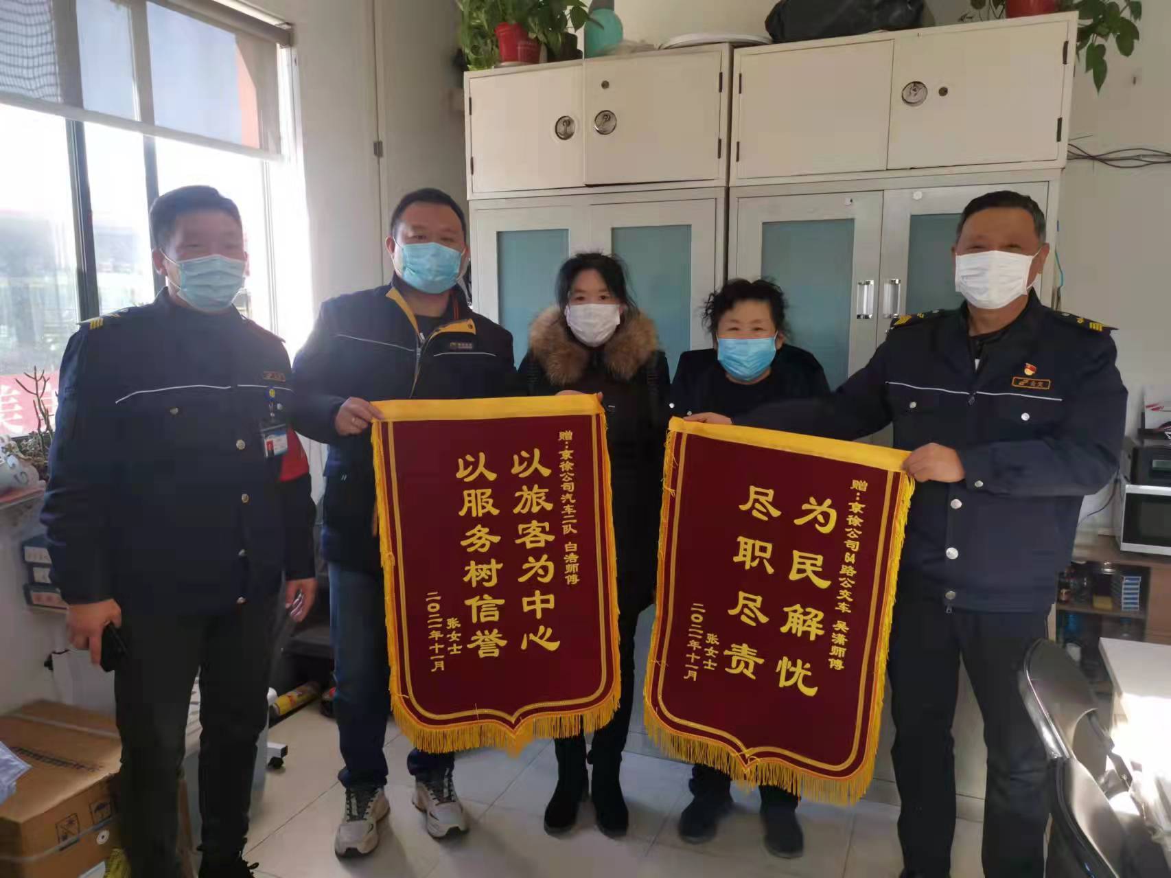 11月11日上午,乘客張女士帶著兩面錦旗來(lái)到食品城車(chē)隊(duì),感謝64路駕駛員吳瀟和現(xiàn)場(chǎng)調(diào)度白浩。