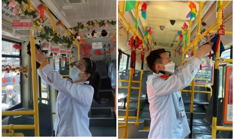 2022年5月20日是第4屆全國公交駕駛員關(guān)愛日,在節(jié)日來臨之際,徐州公交新巴士公司駕駛員精心裝扮主題車廂,為給乘客營造溫馨、舒適的乘車環(huán)境。