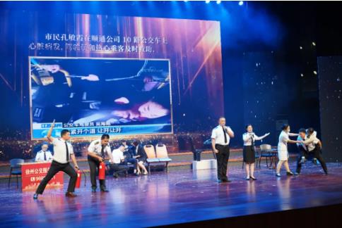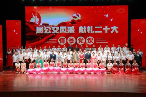 為激勵廣大黨員群眾以實際行動迎接黨的二十大勝利召開,8月10日下午,徐州公交集團成功舉辦“展公交風采 獻禮二十大”情景黨課。市交控集團黨委委員、紀委書記胡濤,市交通運輸局宣傳教育處處長高夫健,徐州廣播電視傳媒集團總編室主任劉建玲,市公交集團外部董事,市交控集團黨建工作部、群眾工作部部門領(lǐng)導,以及公交集團黨委班子成員、先進勞模、職工代表共450余人出席并觀看演出。